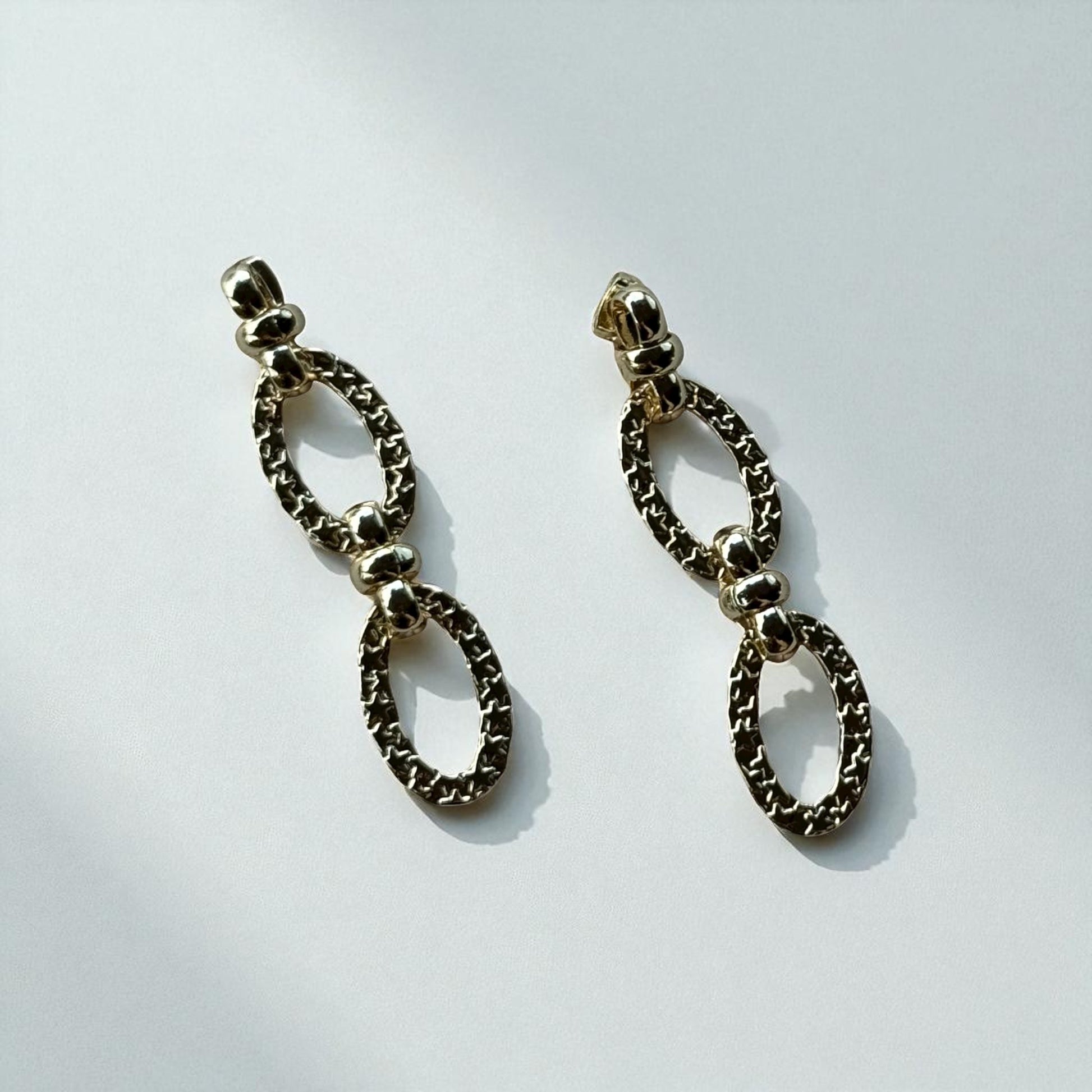 Make a statement with our Golden Aura Link Earrings, featuring a hammered texture that beautifully reflects the light. Crafted with interlocking oval links in a polished gold finish, these earrings are the perfect blend of bold and refined. Lightweight yet eye-catching, they’re designed to elevate both everyday looks and special occasions.