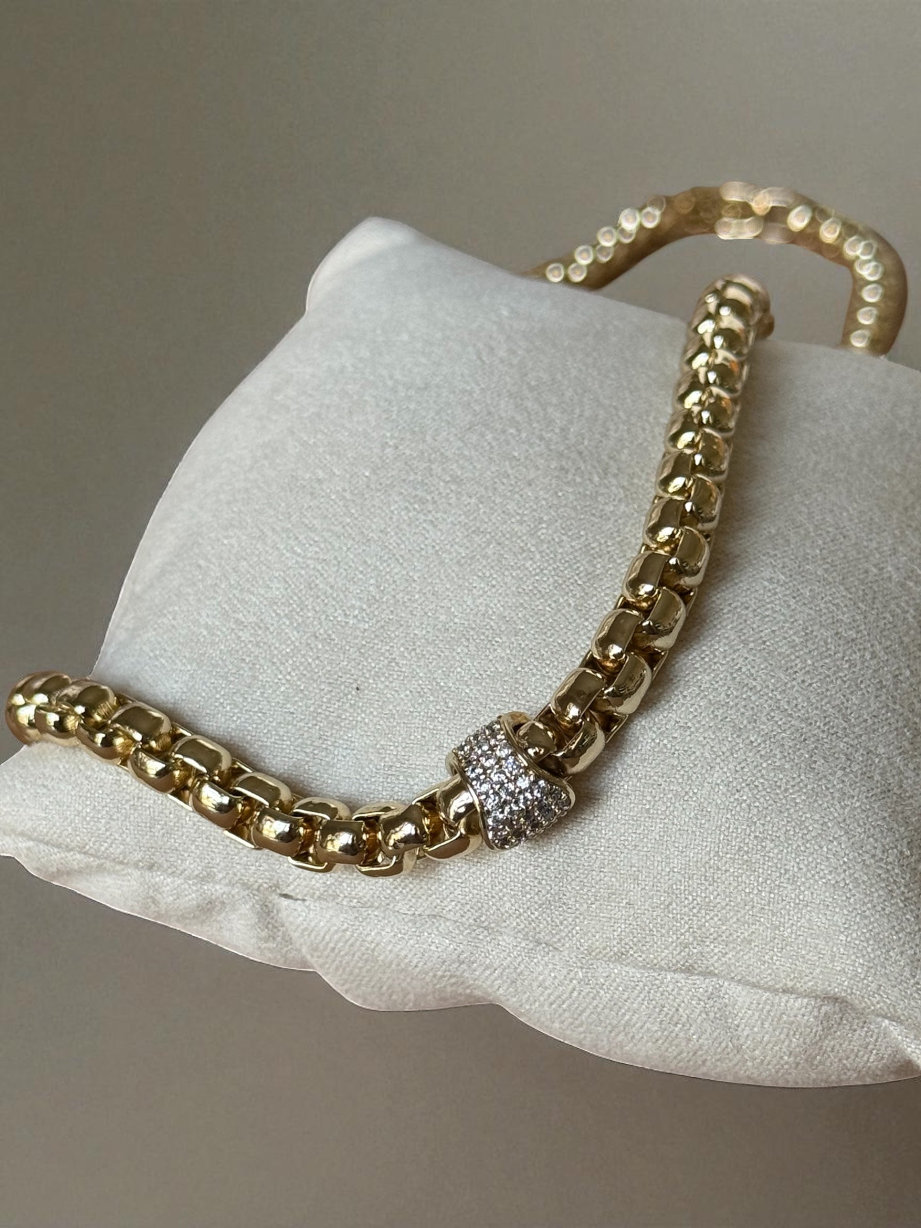 Elevate your style with our Radiant Link CZ Necklace! Featuring a bold gold-toned chain and sparkling cubic zirconia accent centerpiece, this 45 cm (18 inches) necklace adds a touch of elegance and makes a statement. Perfect for layering or wearing solo ! no matter how you style it, you'll shine like a star!